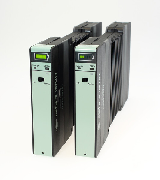 A rechargeable Li-Ion battery that can power a single LAN-XI module or fit into a module frame. Featuring the same dimensions as all LAN-XI modules, this battery module can quickly attach to any standard analyzer module, or slot into a frame.