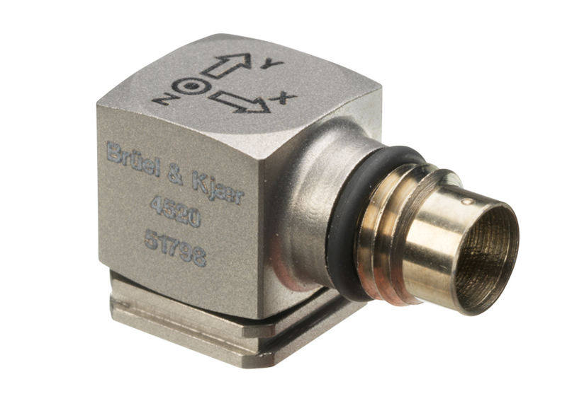 Types 4520, 4520-001 and 4520-004 are small, lightweight, triaxial, piezoelectric accelerometers, with sensitivities of 10 or 1 mV/g. All types feature a hermetic 4-pin receptacle ¼”–28 UNF–2A with three independent outputs for simultaneous measurements on the x-, y- and z-axes. Their light weight makes them ideal for measurements on light structures.