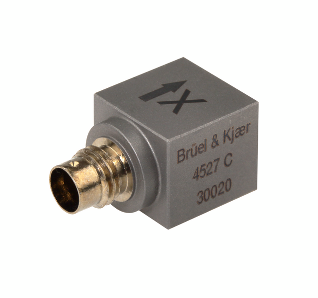 Triaxial Charge Accelerometer Type 4527‐C is a compact triaxial charge accelerometer for high temperature testing. Type 4527‐C is a piezoelectric accelerometer housed in robust titanium with a single integrated Microtech compatible connector.