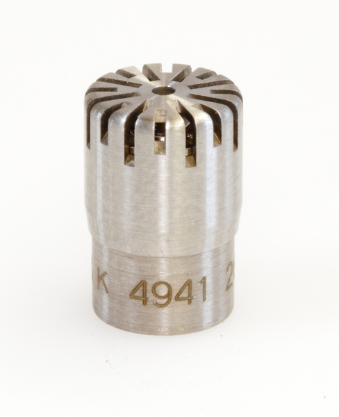 The robust construction of this pressure-field microphone allows it to sustain burst pressure up to 201 dB without damage. Being externally polarized, Type 4941 must be used with a classical preamplifier.